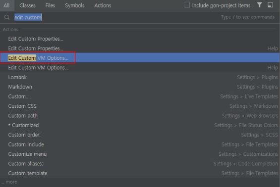SHIFT 빠르게 2번 클릭 후 Edit Custom VM Options 선택