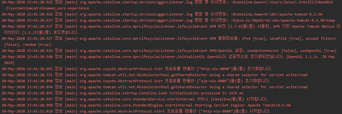 IntelliJ 에서 프로젝트 생성 및 Tomcat 을 이용한 서버 시작 시..