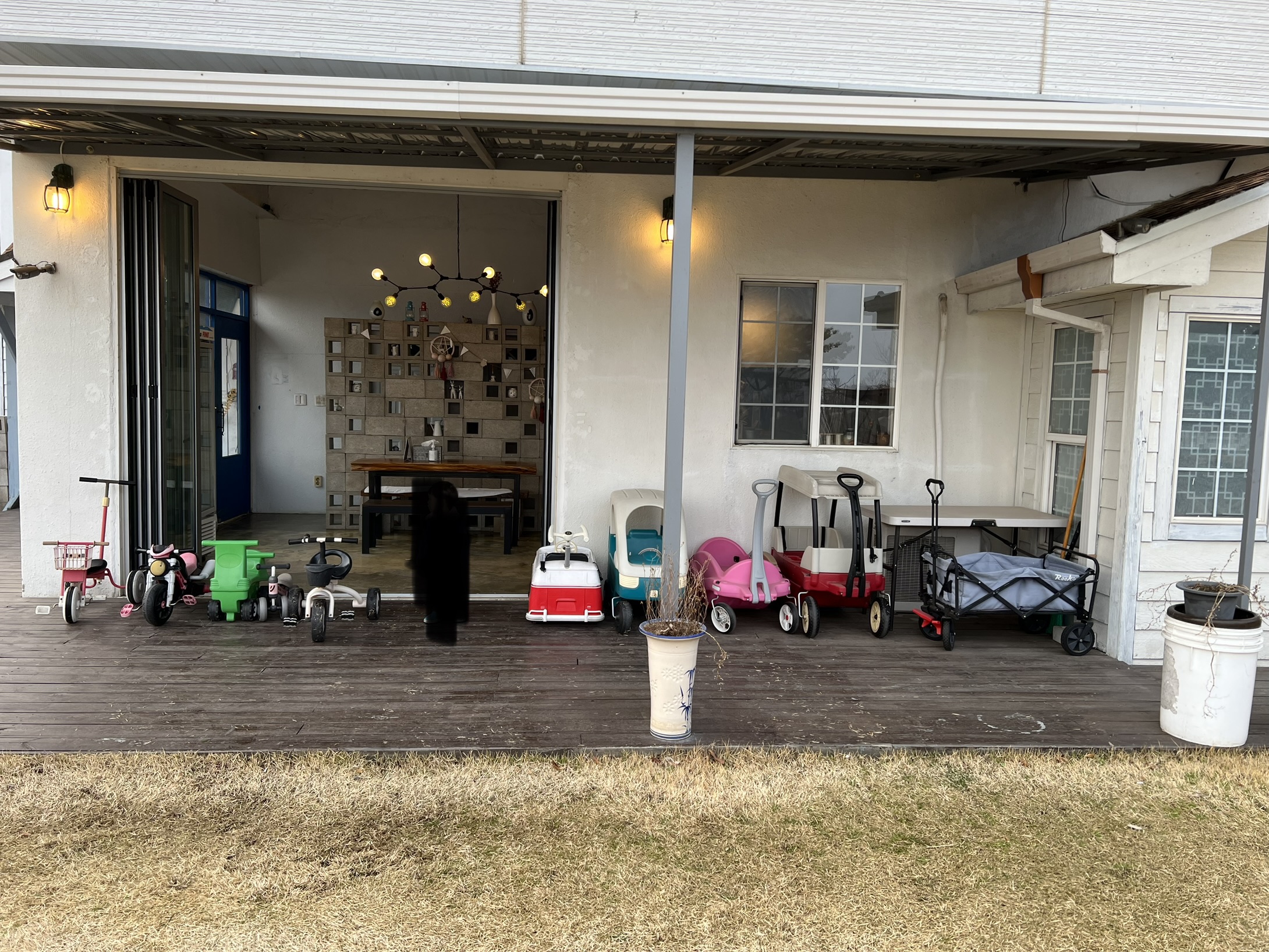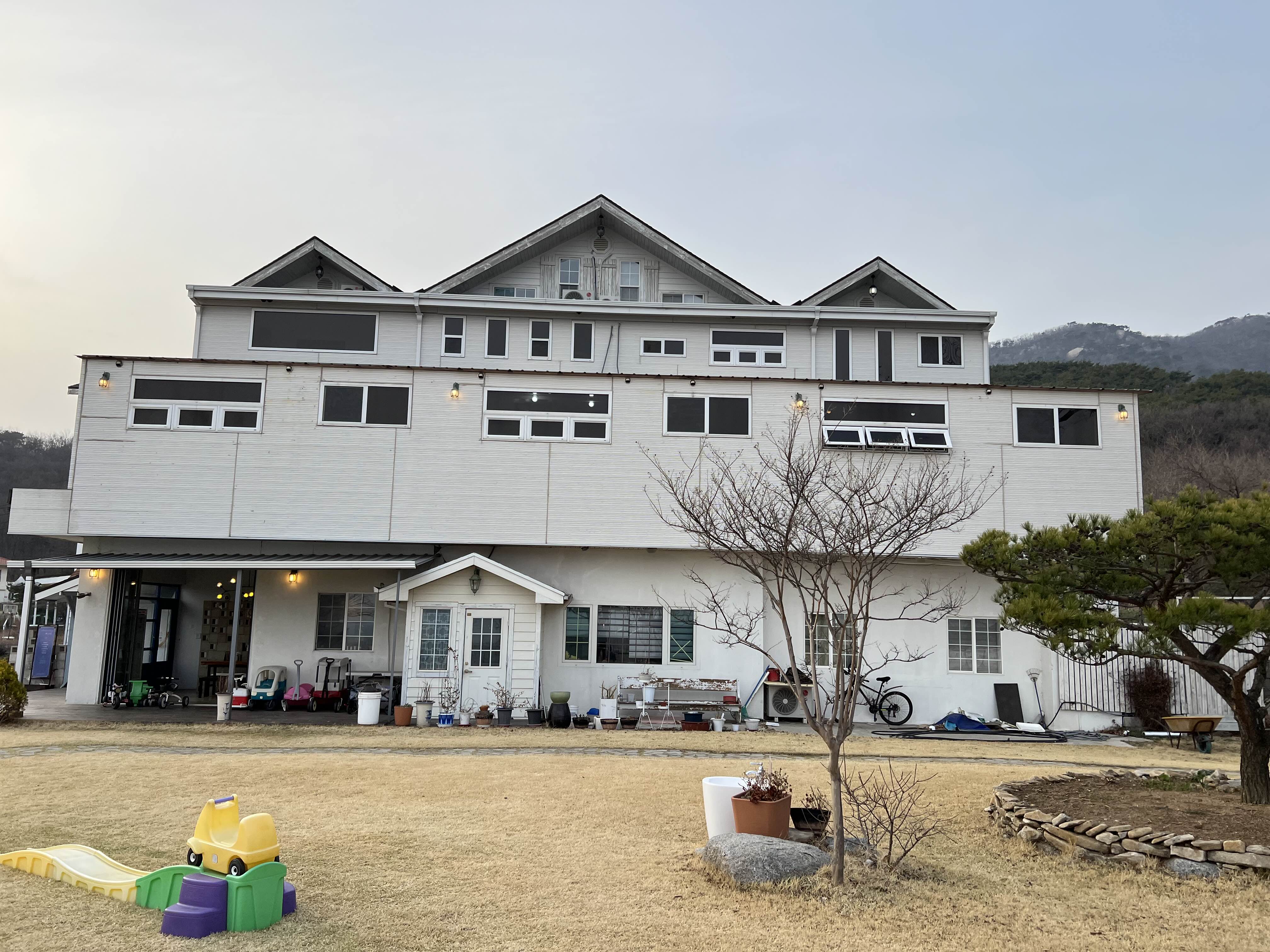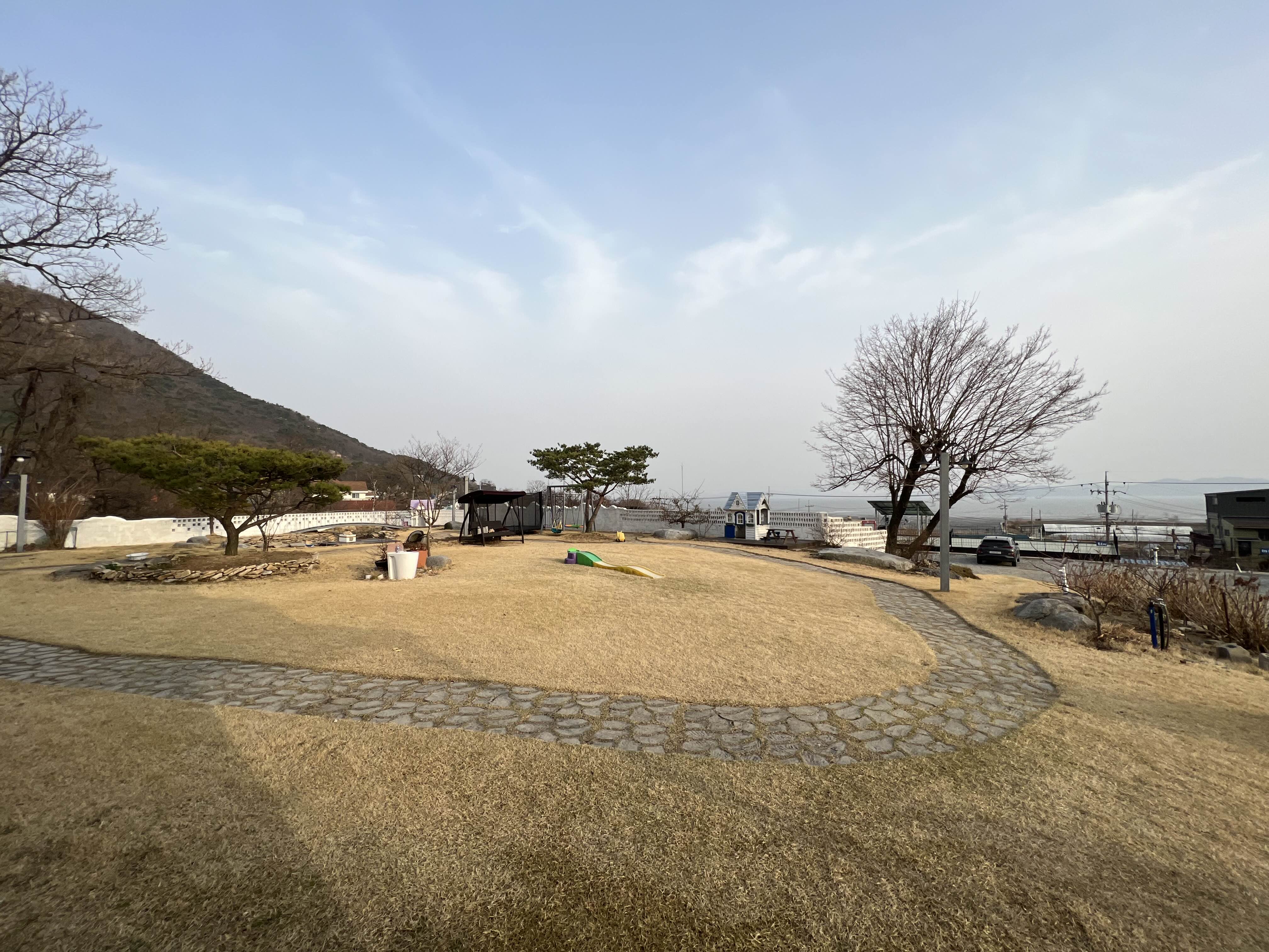 - 넓은 마당에 아이들 놀이기구가 엄청 많다