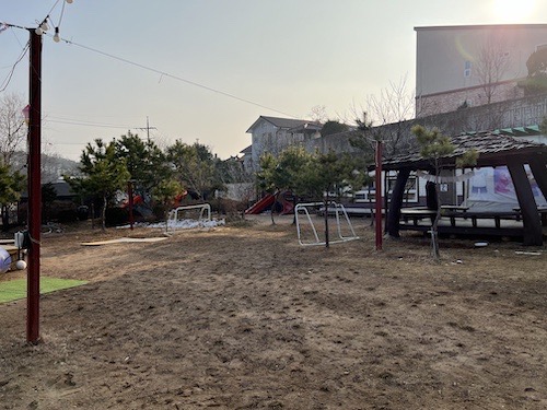그리고 조금 더 왼쪽편으로는 작은 축구 골대와 함께 평상, 넓은 공간이 있었는데요,
