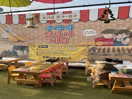 매표소 안에는 작은 매점과 함께 달고나도 할 수 있고, 또 앉아서 쉴 수 있는 의자들이 꽤 있습니다.