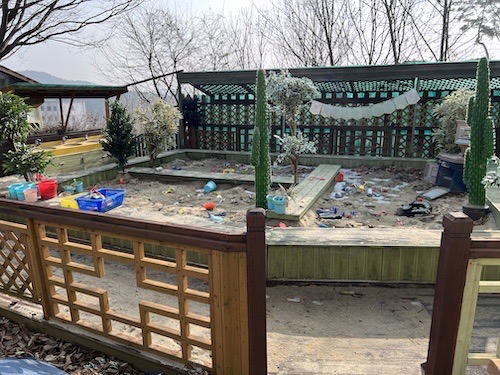 가운데 넓은 공간의 가장자리에는 이렇게 모래놀이를 할 수 있는 공간도 있습니다.