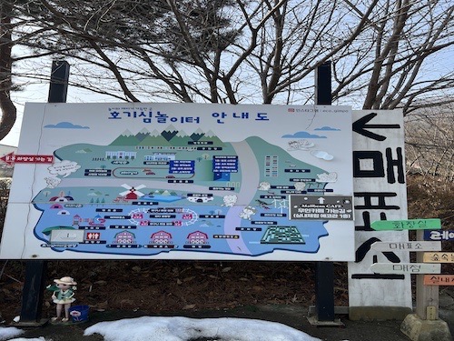 입구 왼편으로는 바로 지도와 함께 매표소가 위치해 있는데요, 그냥 비닐하우스처럼 된 공간이라 이곳이 매표소인가? 하는 생각이 들 수도 있어요.