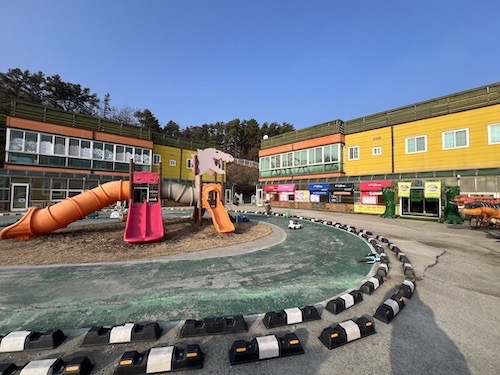 왼쪽이 에코관이고 오른쪽이 빌리관인데요, 사이에 널찍한 공간에는 입구에서부터 보이던 카트 레이싱 같은 도로와 함께 가운데 놀이터도 위치하고 있어요.
