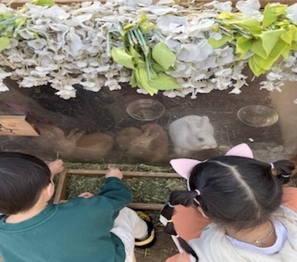입구 왼쪽편, 카운터 바로 앞에는 귀여운 토끼들이 몇 마리 있습니다.
