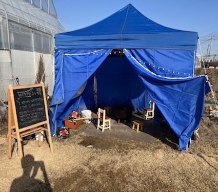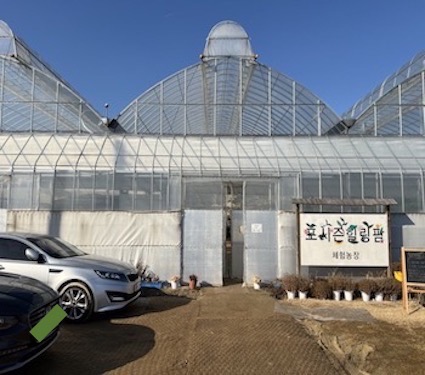 주차를 하고 나면 거~대한 비닐하우스에 입구가 뙇! 있습니다.