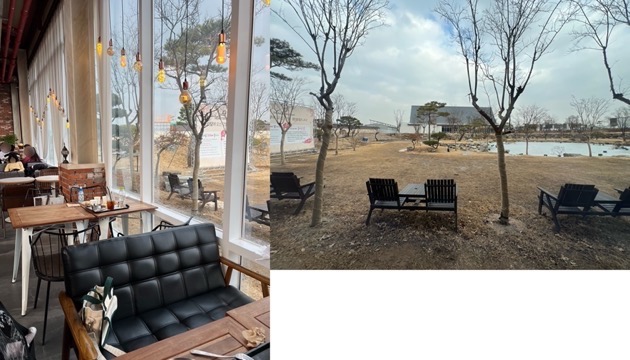 전 창가쪽에 앉았는데요, 살얼음이 낀 연못을 바라보며 멍~때리는게 아직도 기억에 남네요.