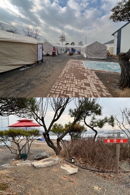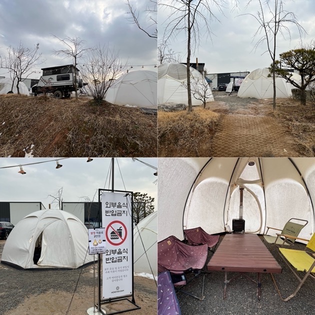 눈썰매장의 반대편에는 캠핑 분위기를 낼 수 있는 곳이 있어요.