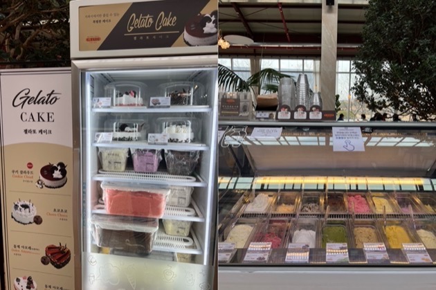 젤라또는 여기서 바로 고르고 계산 하시면 됩니다. 아이스크림 케이크도 있어요!
