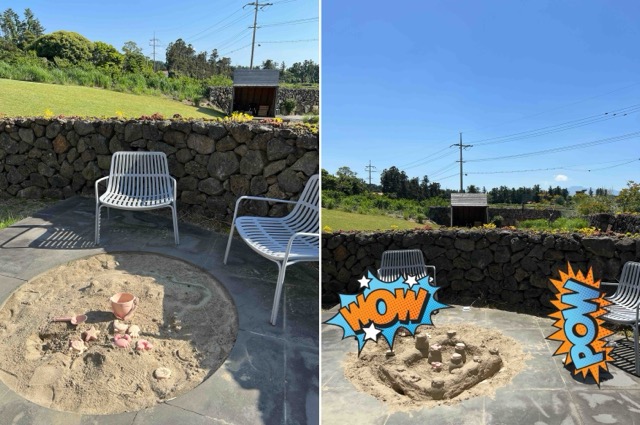 바로 앞 마당에 있는 모래놀이를 할 수 있는 공간인데요,