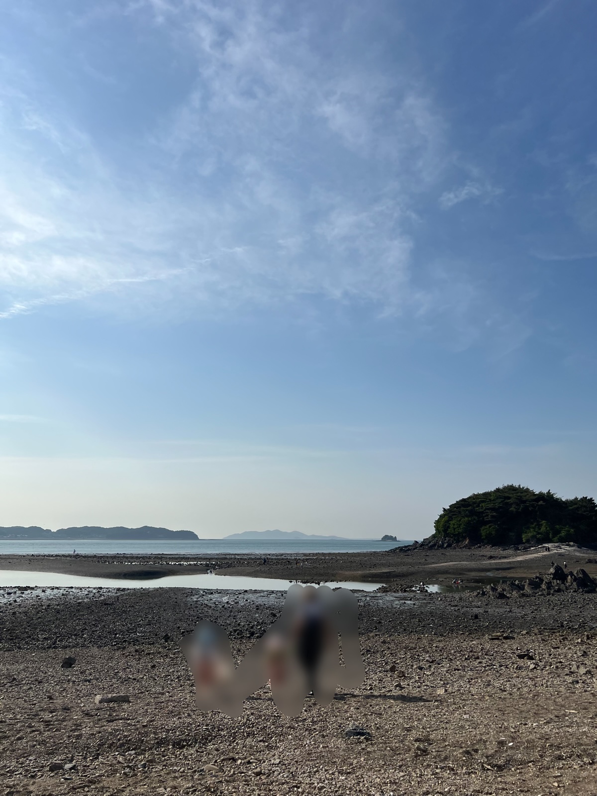 길을 따라 나오면 마주하게 되는 드무리 해변의 풍경이에요. 드무리 해변은 고운 모래사장보다는 물이 빠지면 끝없이 펼쳐지는 갯벌로 더 유명한 곳이더라구요. 저희는 해루질때문에 간조(물이 빠지는 시간)에 맞춰서 갔는데, 정말 바다였던 곳이 맞나? 싶을 정도로 광활한 갯벌이 드러나서 너무 신기했어요. 아이들이랑 같이 와서 갯벌 생물들 관찰하고 놀기에도 완전 최고일 것 같았어요. 여기 가실 분들은 꼭 '물때 시간표'를 확인하고 가세요! (위에 말한 것 처럼 팬션 사장님께 물어보셔도 됩니다!)
