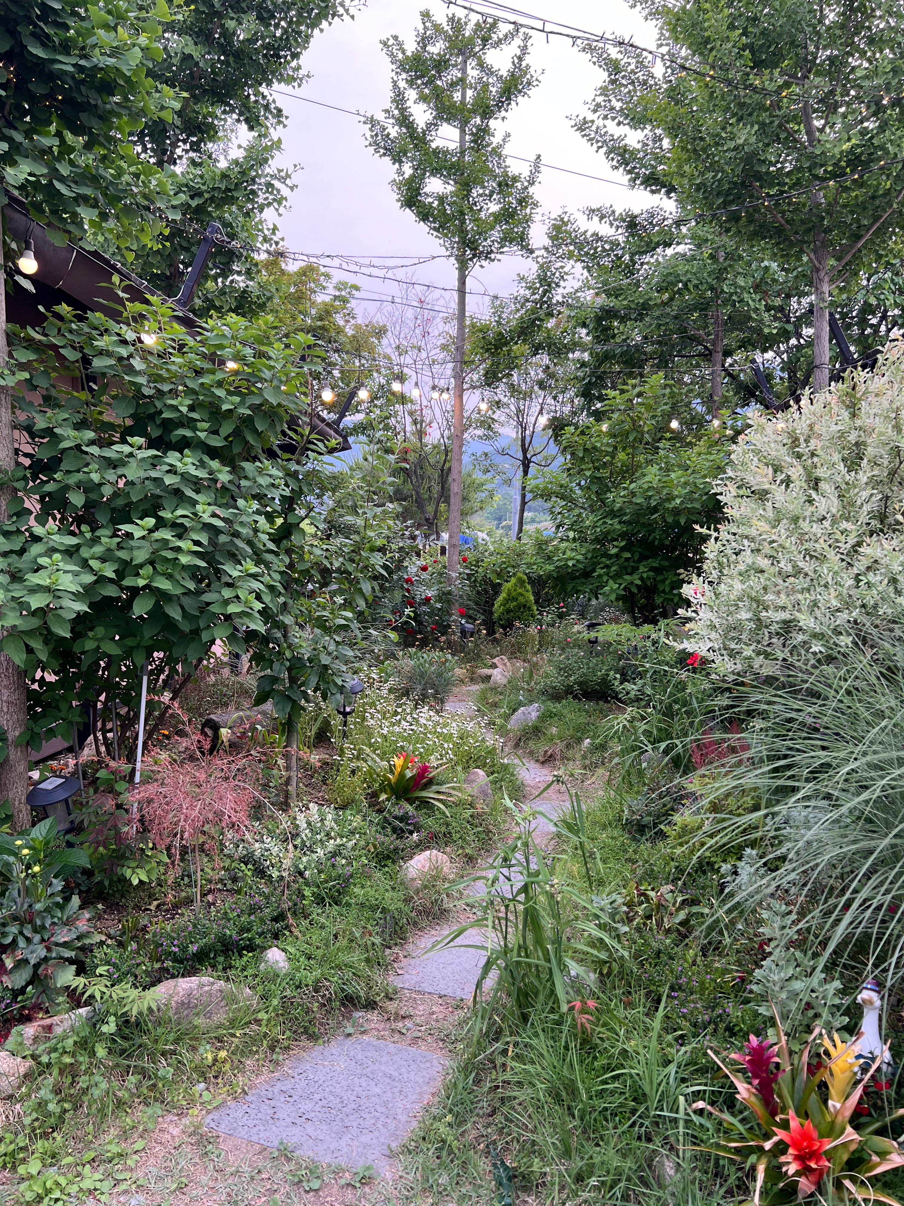 PASSION 창고 옆으로 난 이 오솔길도 정말 예뻤어요. 아기자기하게 가꿔진 화단과 돌길이 어우러져서 밥 먹고 가볍게 산책하기에 좋았어요. 곳곳에 사장님의 정성이 느껴지는 공간이었어요. (근데 사진으로 보이는 길이 다라서..정....말 잠깐 그냥 들어갔다 나오는 느낌의 산책입니다...ㅎㅎ;;;)