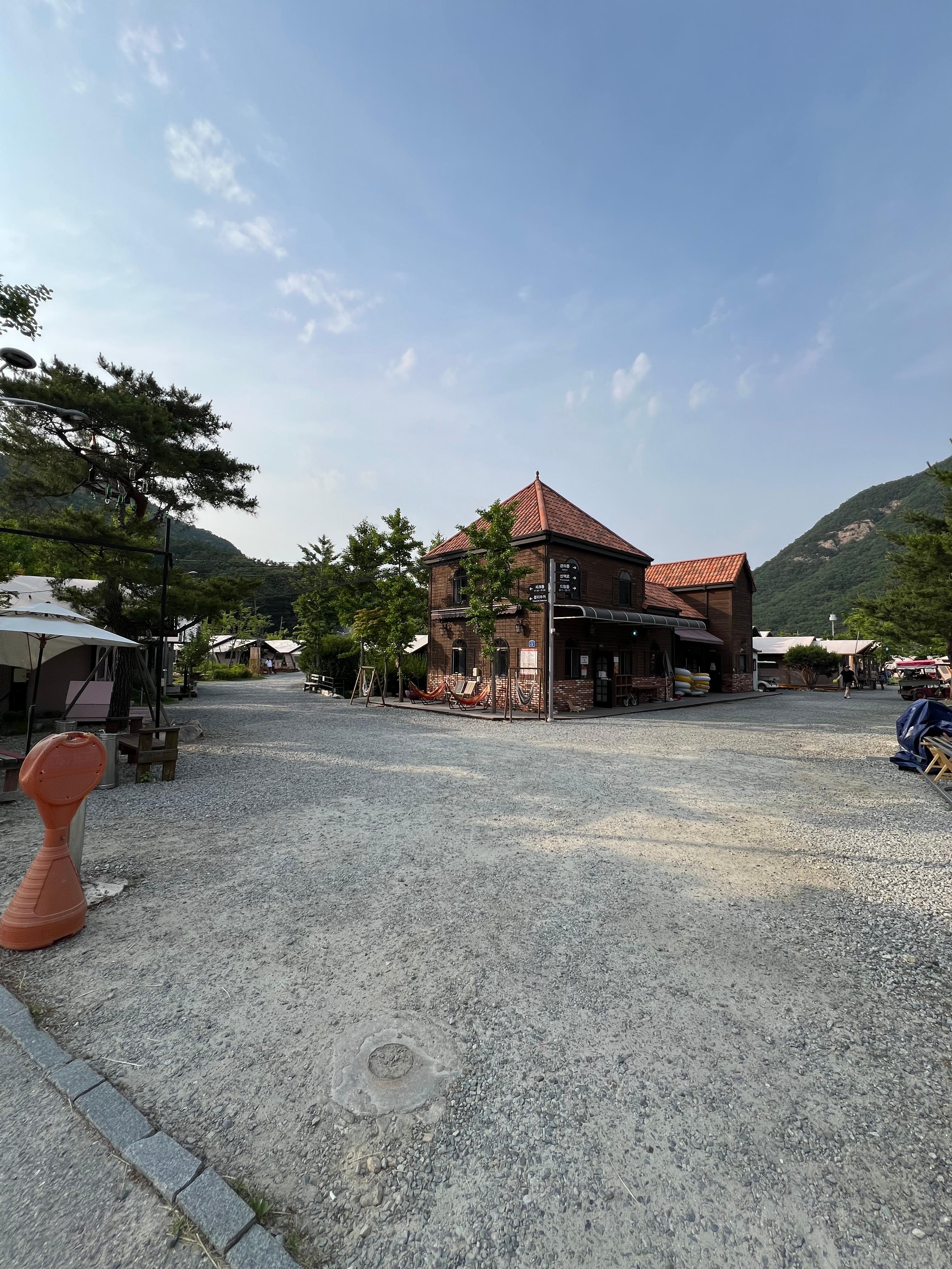 주차하고 딱 들어서는데 오~ 하고 감탄사를 내질렀어요. 널찍한 공간과 함께 꼭 유럽의 공장이나, 작은 시골 마을의 건물을 본딴 것 같은 느낌의 빨간 지붕 관리동이 상당히 이뻐 보였거든요. 넓은 자갈마당과 푸른 하늘과 아주 잘 어울렸어요.
