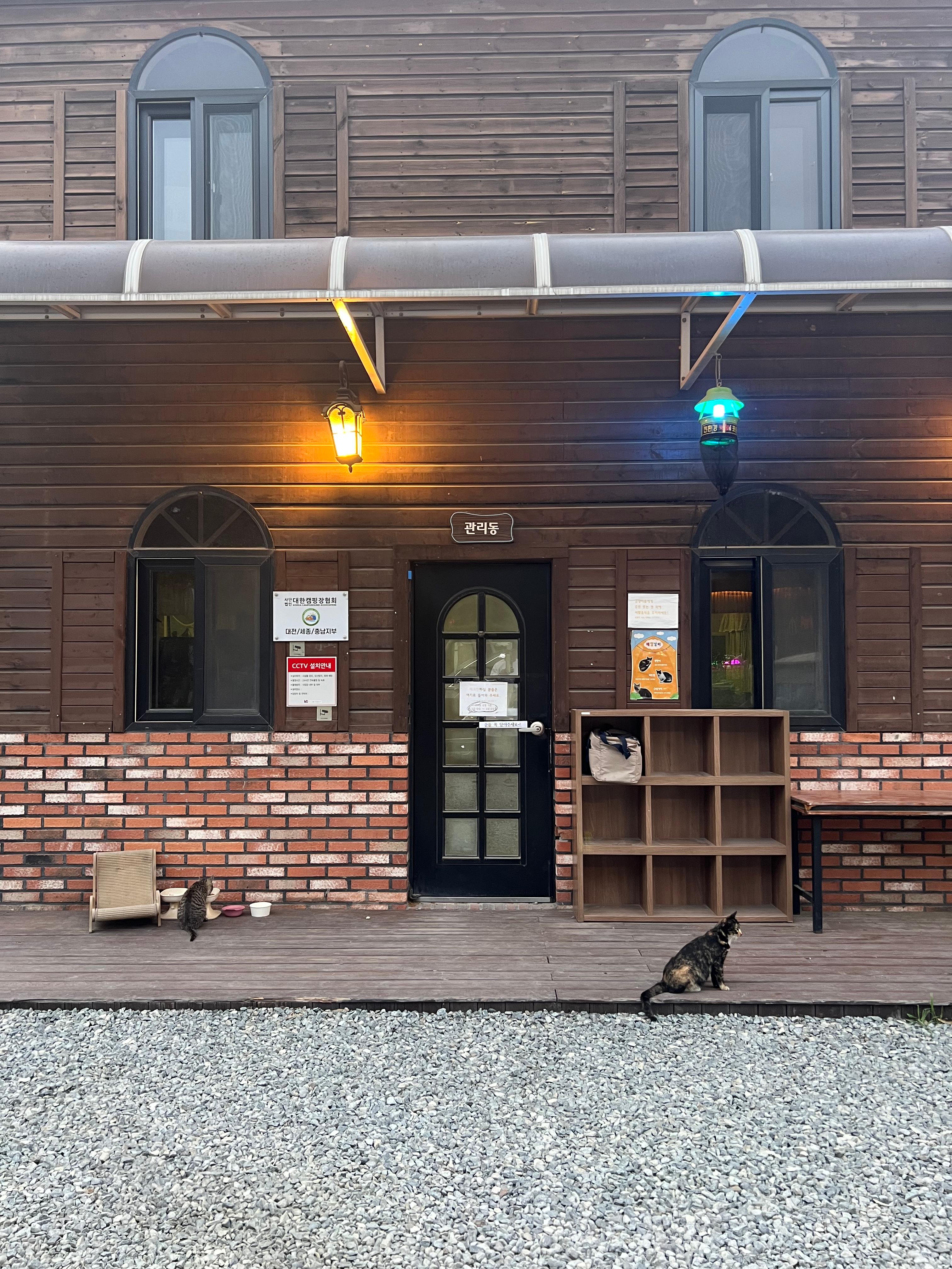 체크인을 하러 간 관리동 앞에는 이렇게 귀여운 고양이들이 유유자적 쉬고 있더라구요. 사람 손을 많이 탔는지 피하지도 않고 너무 순했어요. 저희 아이는 고양이들 보느라 들어갈 생각도 안 하더라구요. 여기 사장님이 냥이들을 잘 챙겨주시는 것 같았어요. 이렇게 사진을 찍고보니 더 이국적인 느낌이 물씬 풍기는 듯하지 않나요...? (아니면...말..)