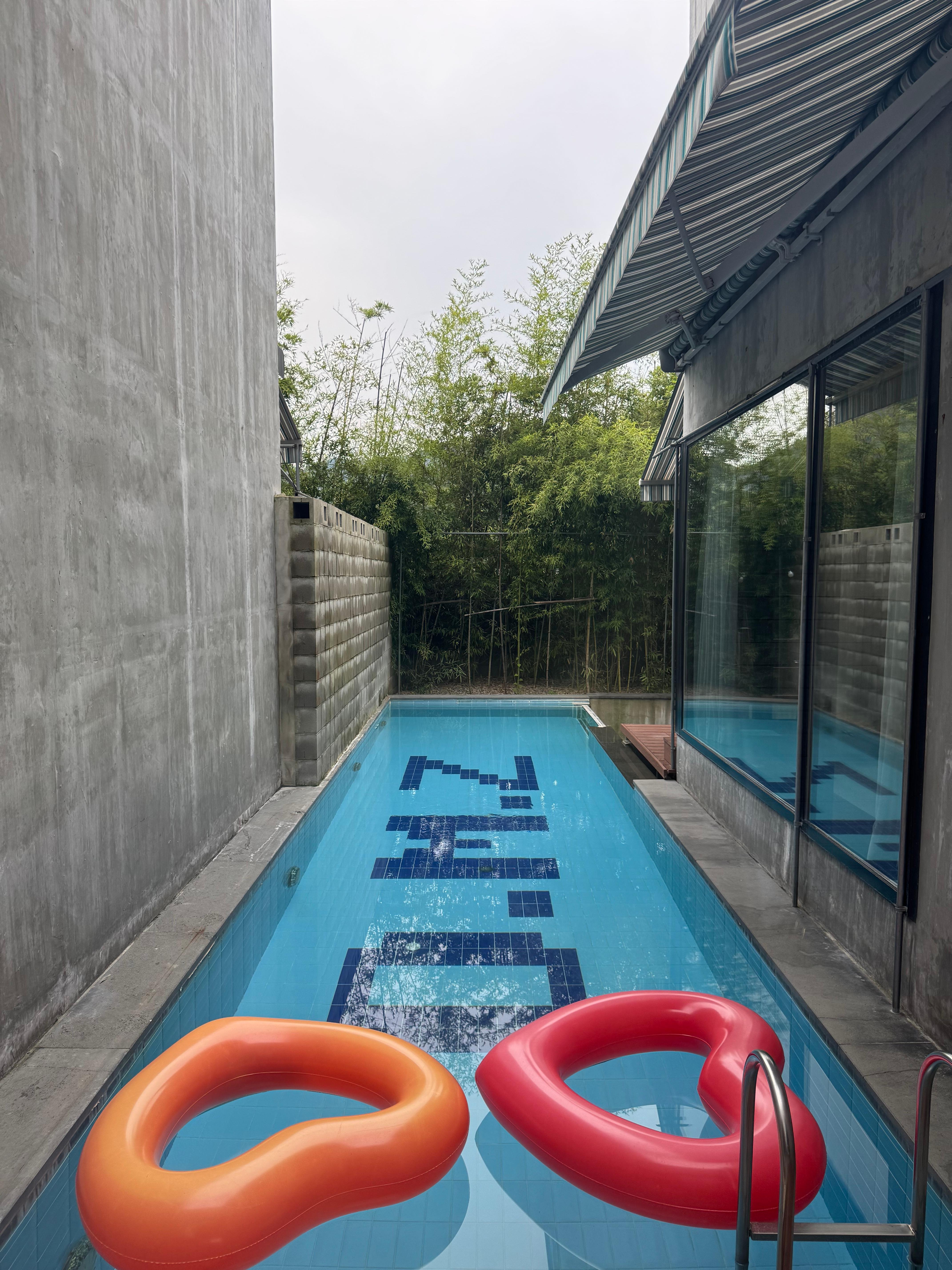 이 숙소의 하이라이트는 역시 실내 수영장이에요!! 입실하면 미온수가 채워지고, 대형 튜브도 두 개나 준비되어 있어서 아이들과 놀기 딱이었어요. 어른들이라면 아이들 재운 뒤 수영 연습도 충분히 할 수 있을 만큼 넓고 쾌적했어요. 다만, 22시가 넘으면 수영장 바닥 조명이 꺼져서 분위기를 생각하면 그 전에 이용하는 것이 더 좋을 것 같아요.