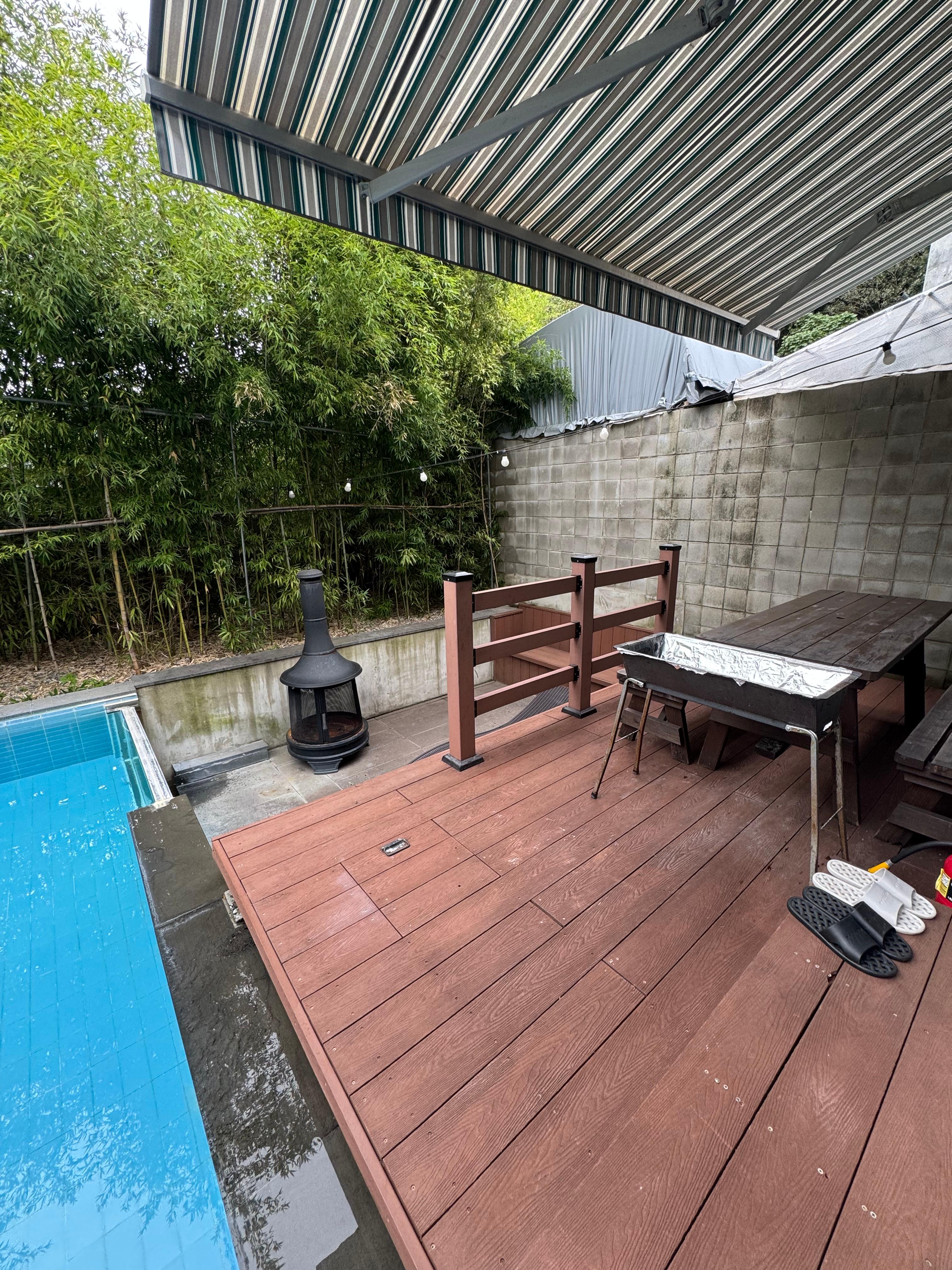 수영장 끝에는 바베큐장이 연결되어 있는데, 실내에서 바로 이동할 수 있어 정말 편했어요. 썬베드까지 구비되어 있어, 여유롭게 쉴 수 있는 점도 좋았답니다.